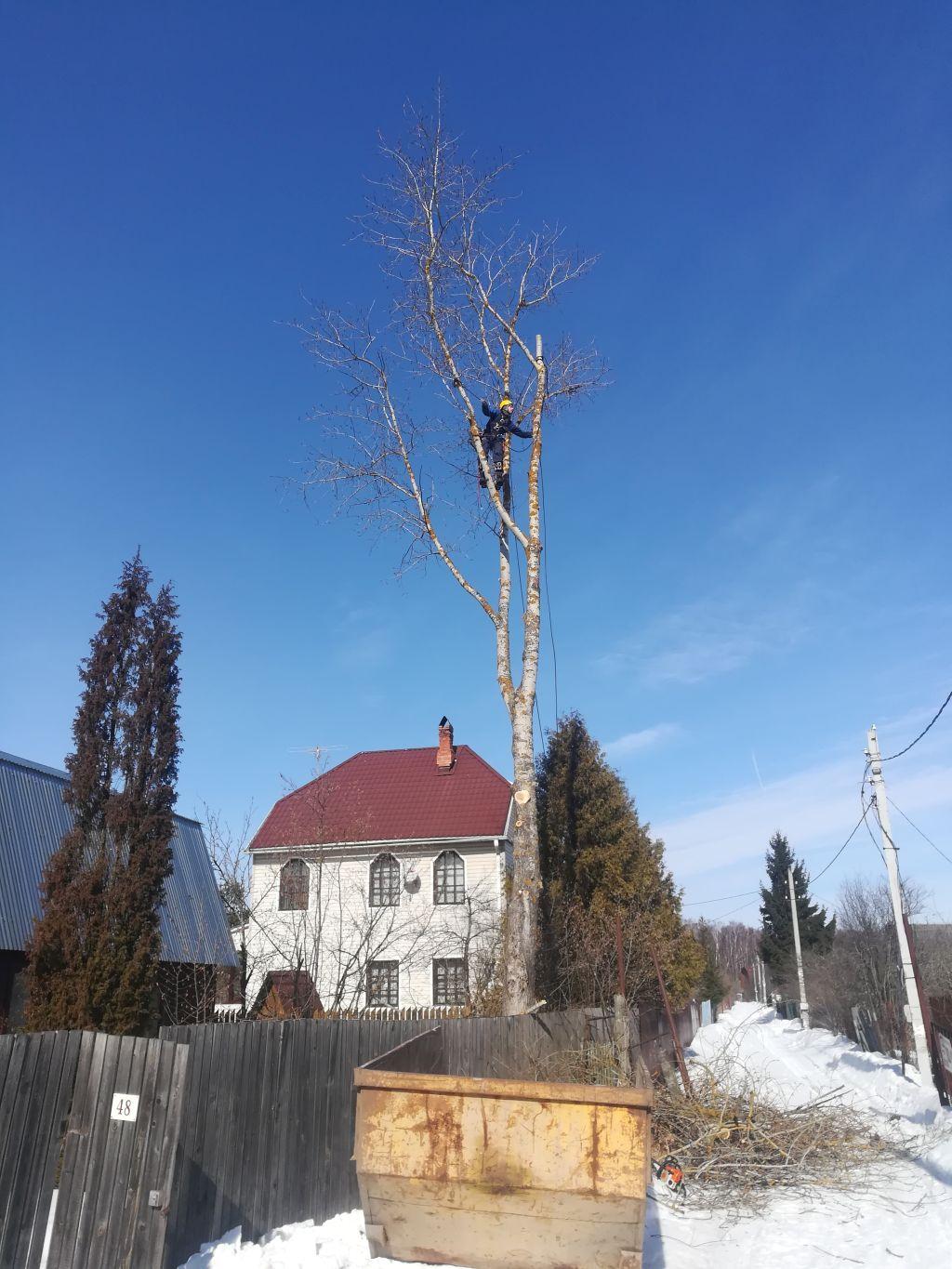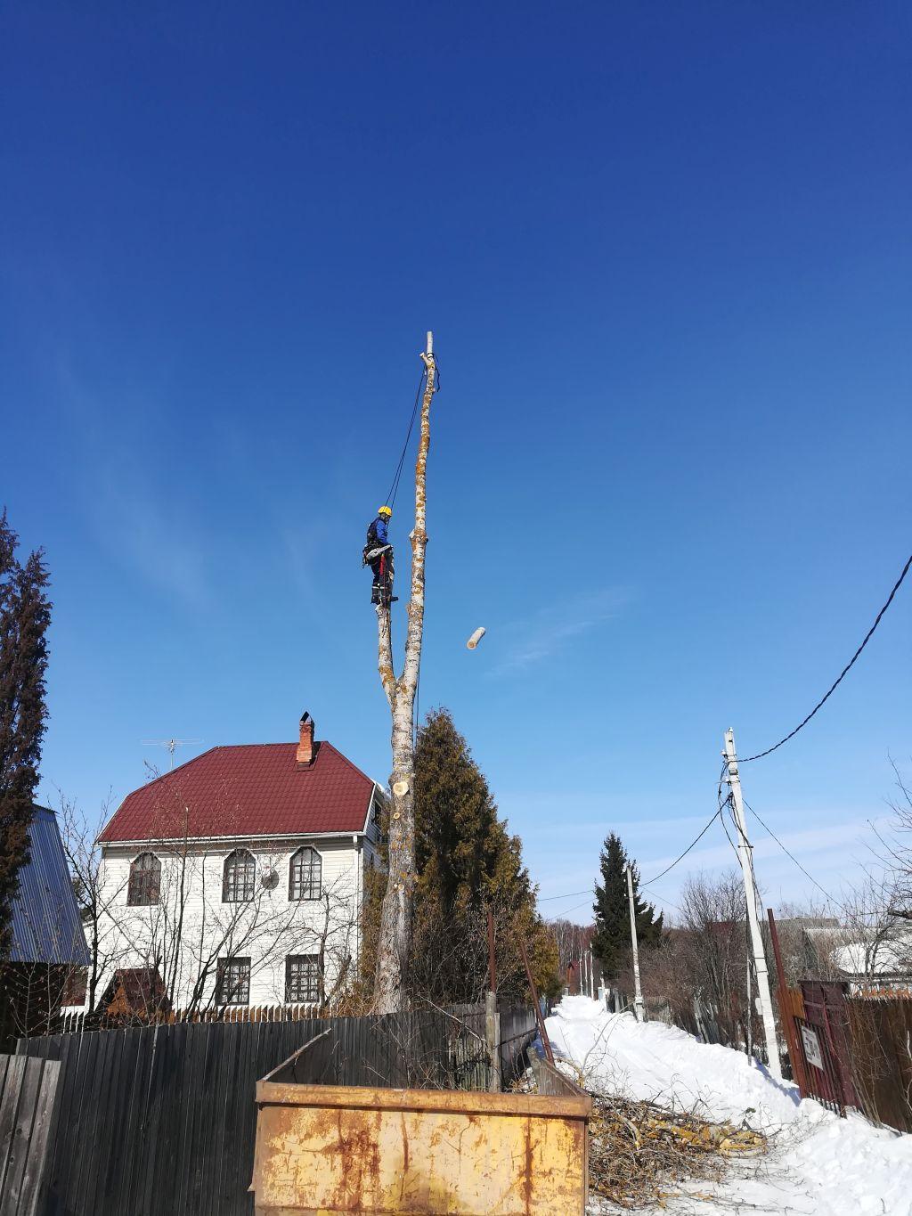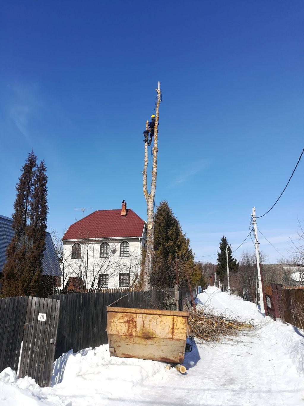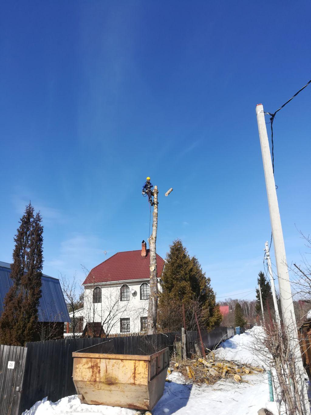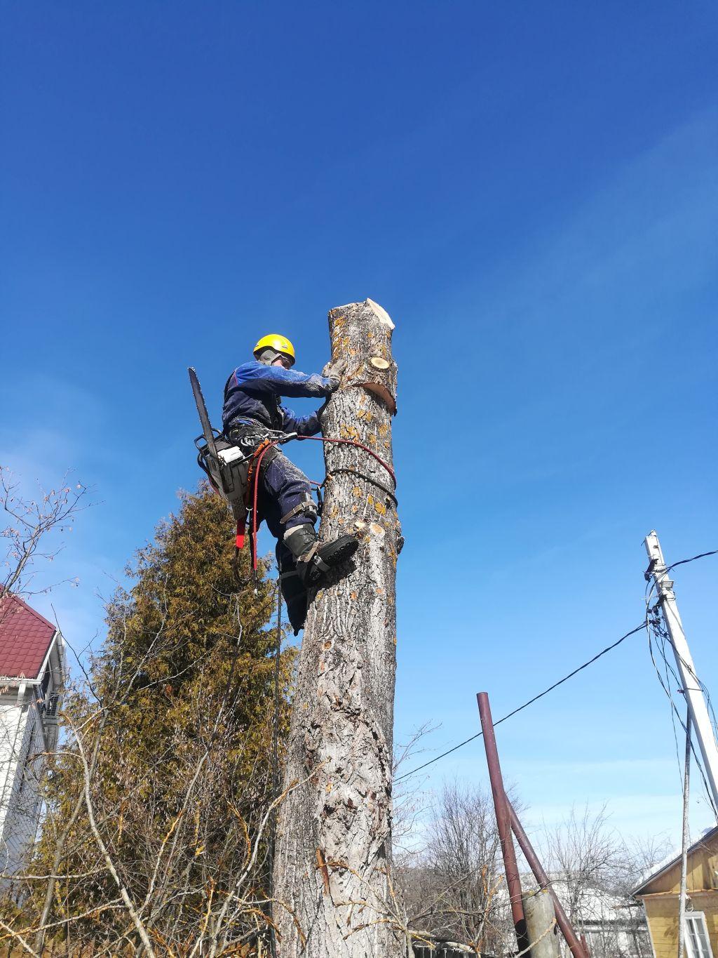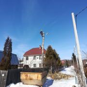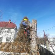 Необходимо было удалить тополь, который находился рядом с жилым домом и линией электропередач. Просто срубить такое дерево невозможно, потому, что при падении гарантировано будет причинен материальный ущерб. Поэтому удалить такое дерево могут только промышленные альпинисты-арбористы. Это специалисты, владеющие навыками удаления деревьев и использованием специального снаряжения. В данном случае дерево было распилено по частям, которые впоследствии были аккуратно собраны и вывезены для утилизации