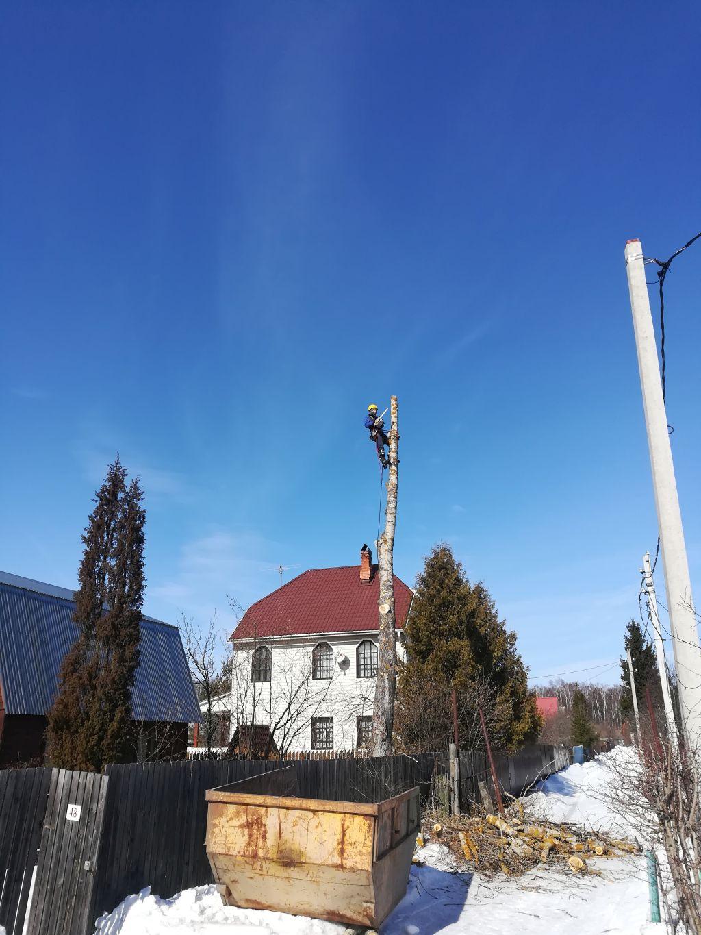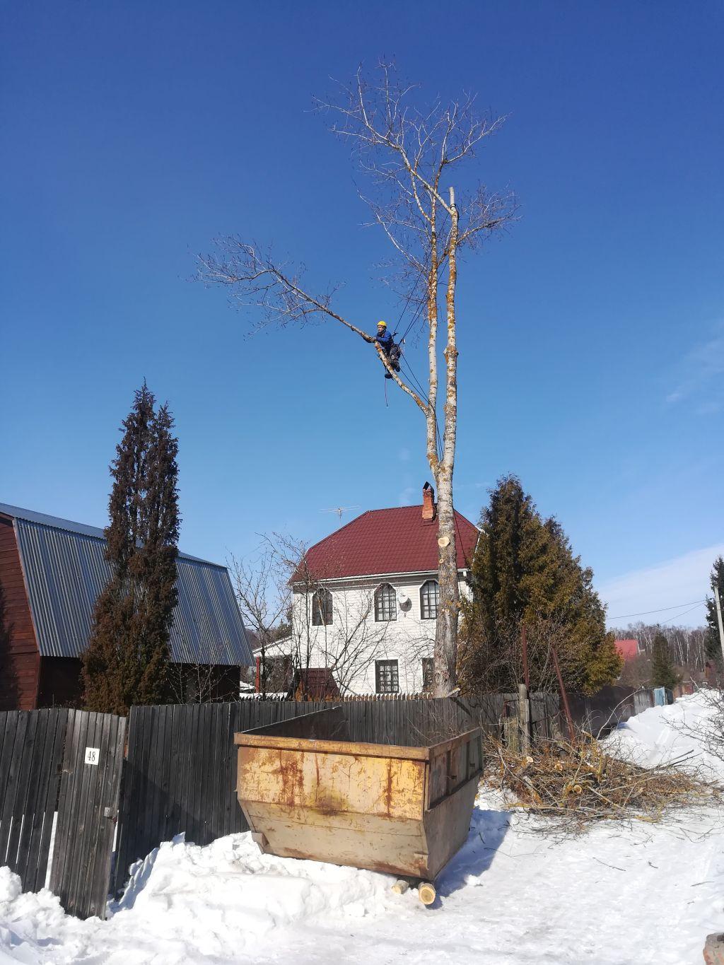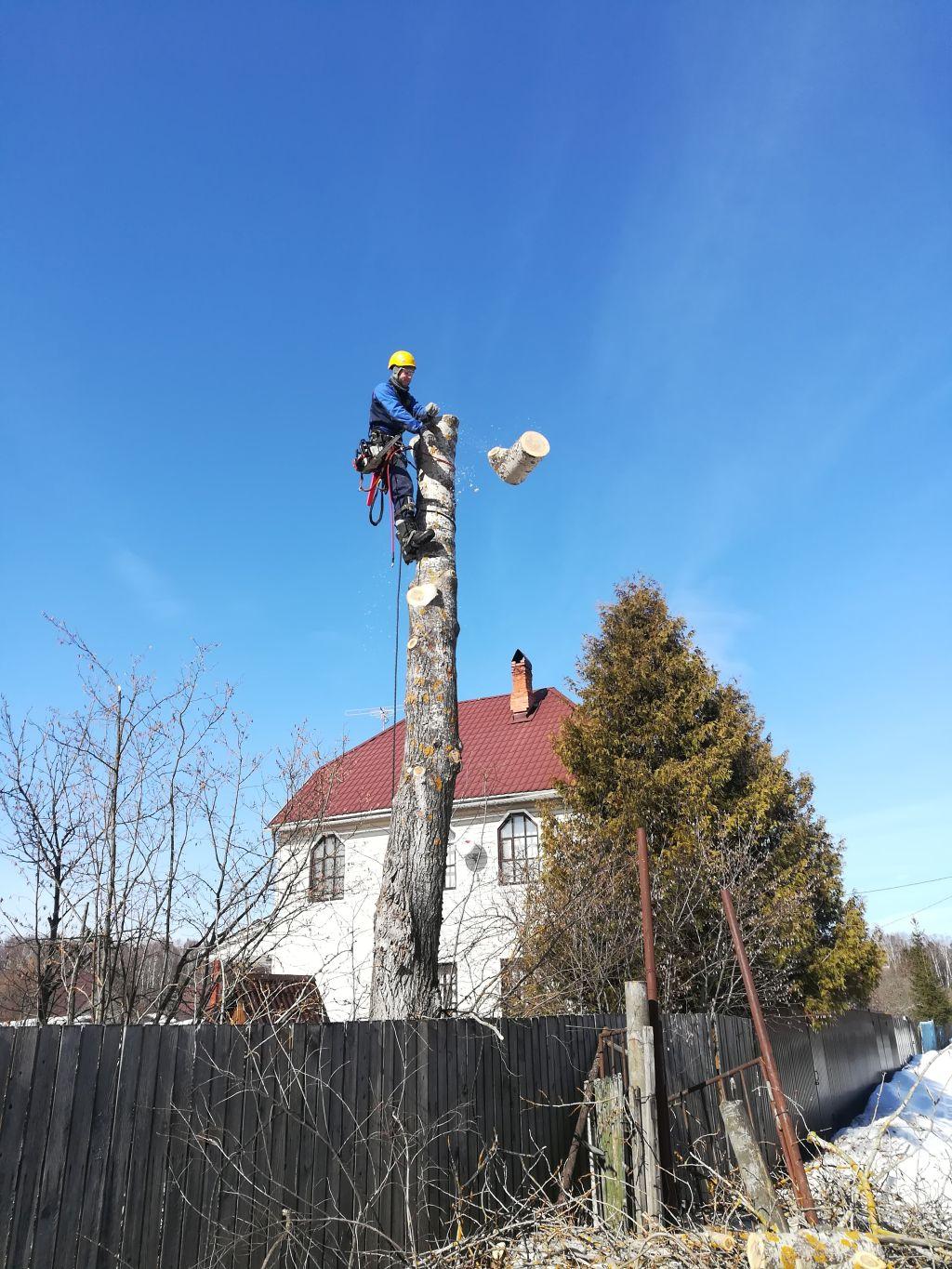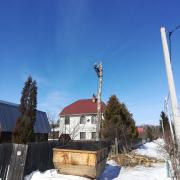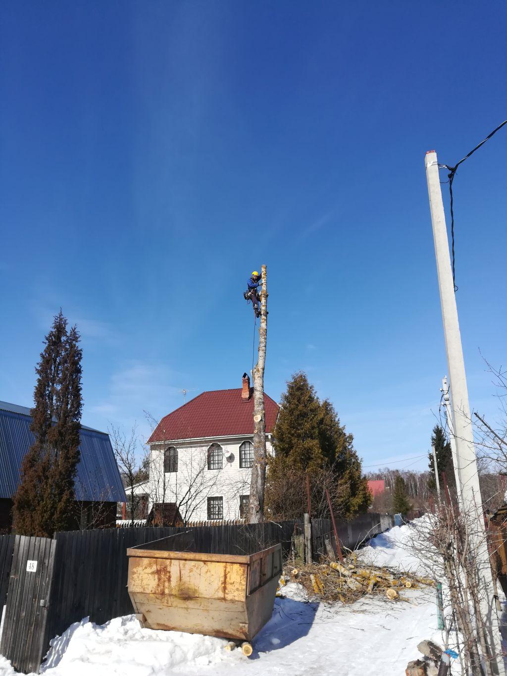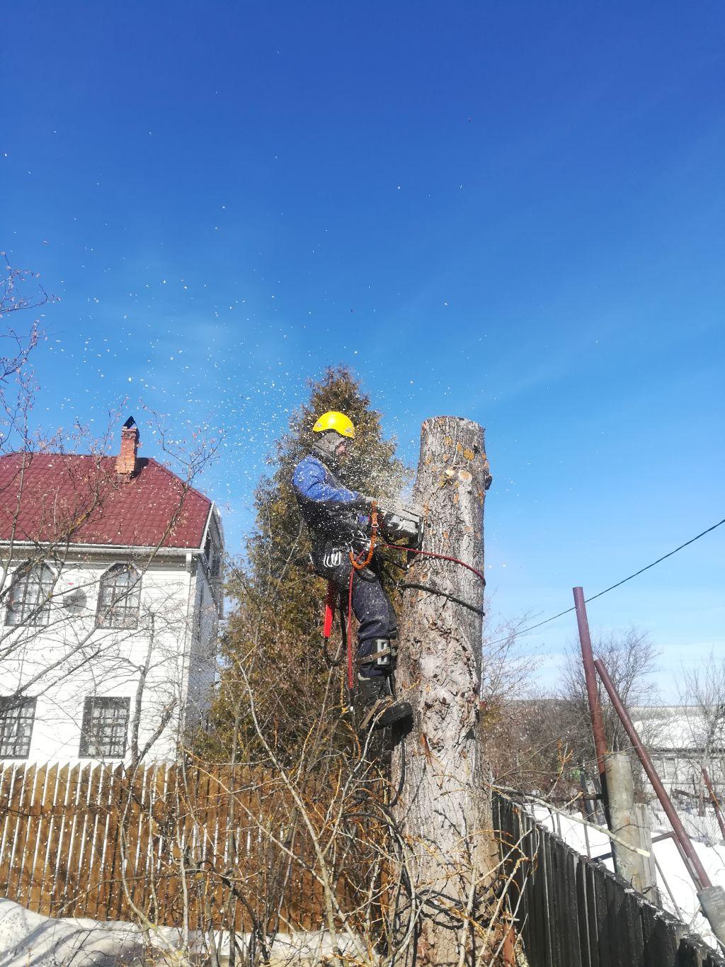 Необходимо было удалить тополь, который находился рядом с жилым домом и линией электропередач. Просто срубить такое дерево невозможно, потому, что при падении гарантировано будет причинен материальный ущерб. Поэтому удалить такое дерево могут только промышленные альпинисты-арбористы. Это специалисты, владеющие навыками удаления деревьев и использованием специального снаряжения. В данном случае дерево было распилено по частям, которые впоследствии были аккуратно собраны и вывезены для утилизации