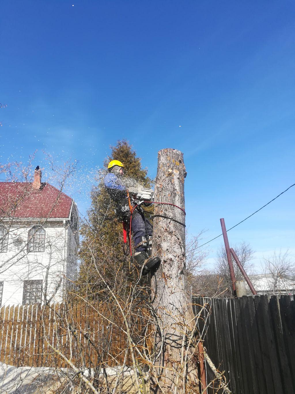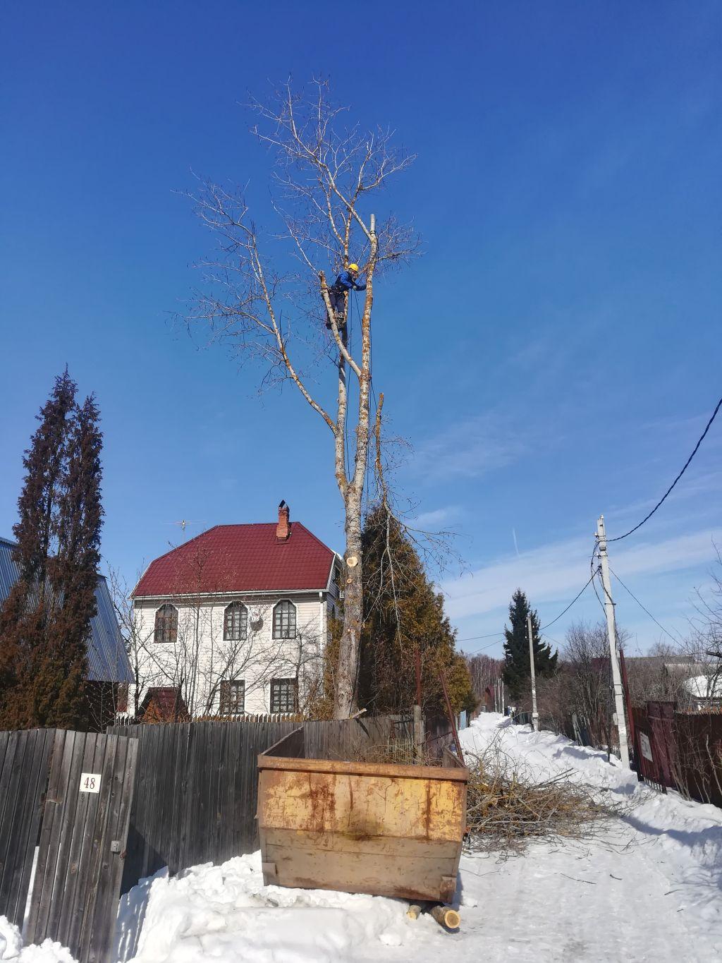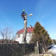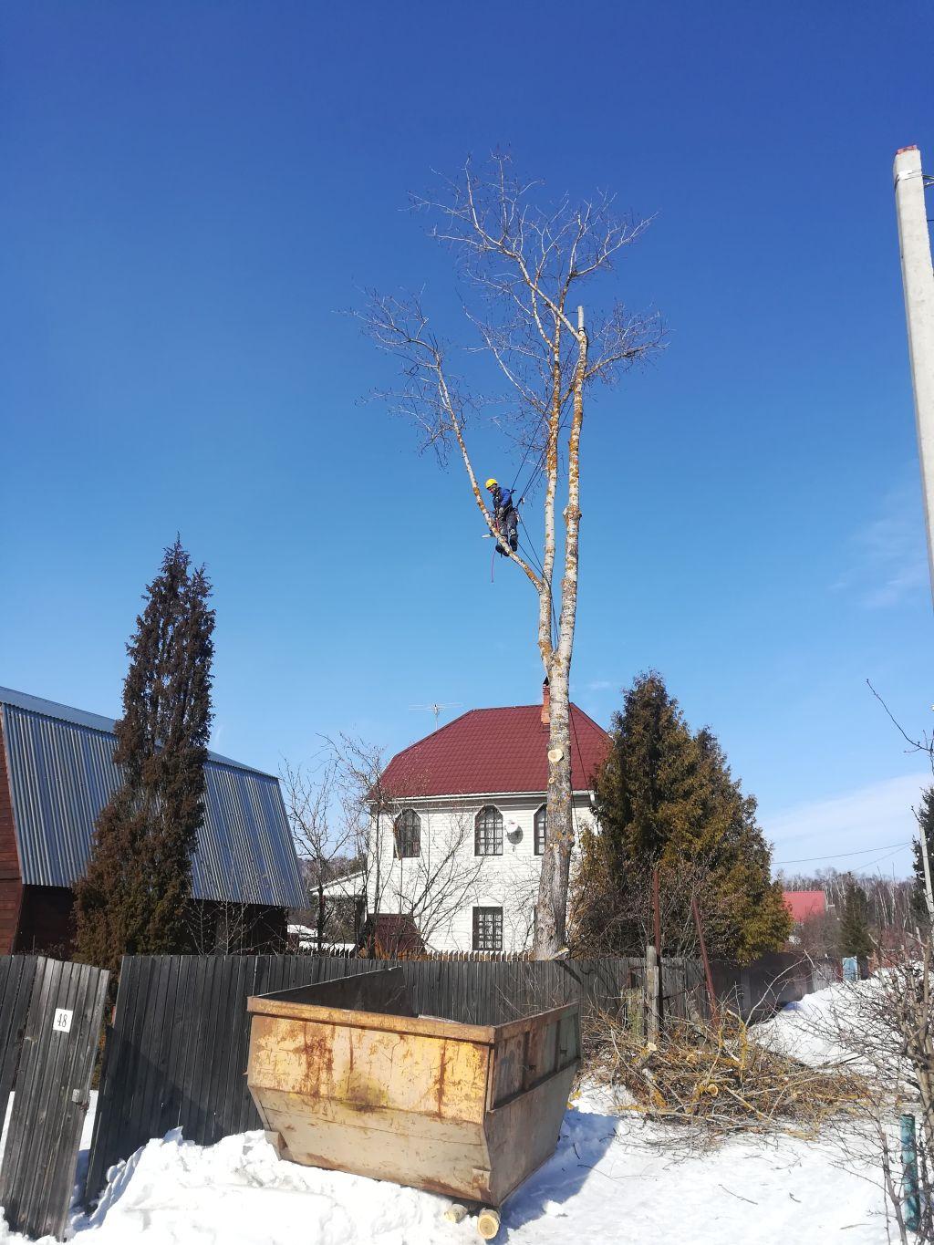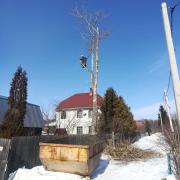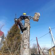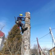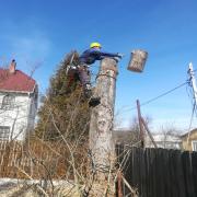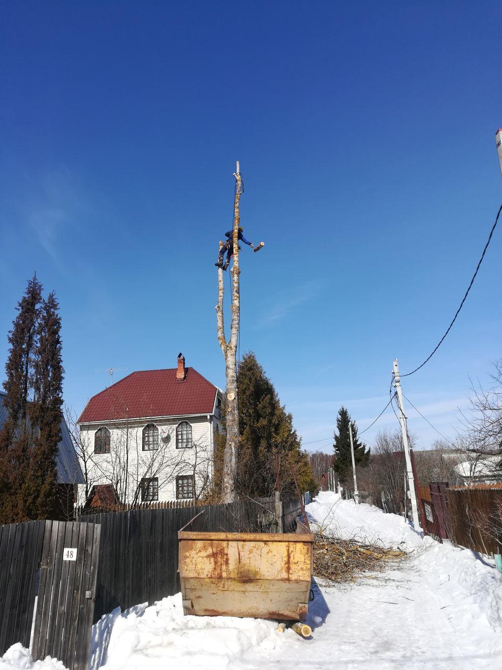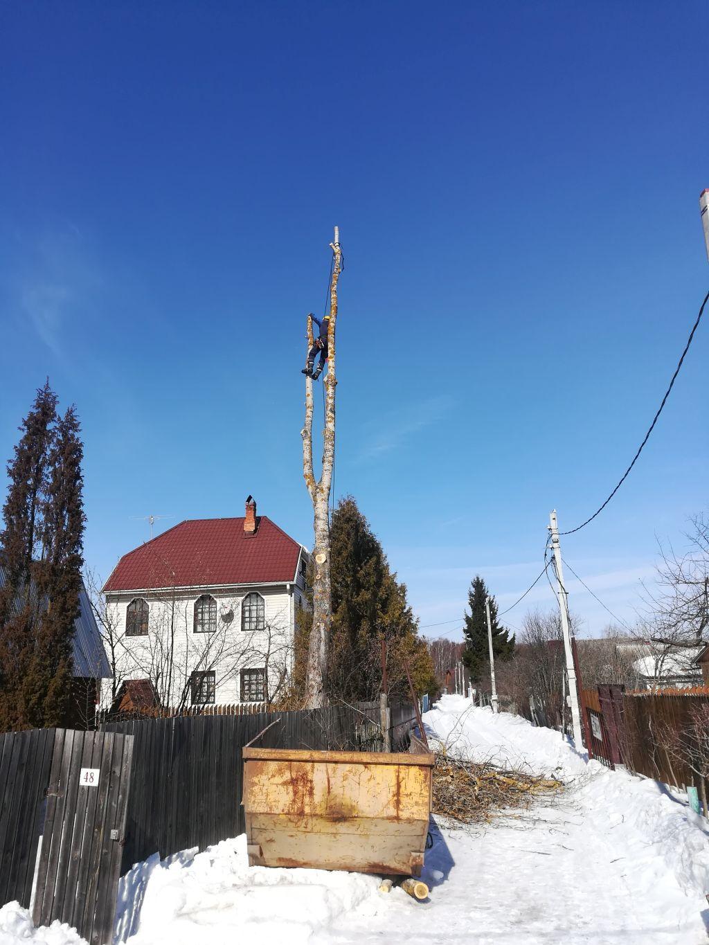 Необходимо было удалить тополь, который находился рядом с жилым домом и линией электропередач. Просто срубить такое дерево невозможно, потому, что при падении гарантировано будет причинен материальный ущерб. Поэтому удалить такое дерево могут только промышленные альпинисты-арбористы. Это специалисты, владеющие навыками удаления деревьев и использованием специального снаряжения. В данном случае дерево было распилено по частям, которые впоследствии были аккуратно собраны и вывезены для утилизации