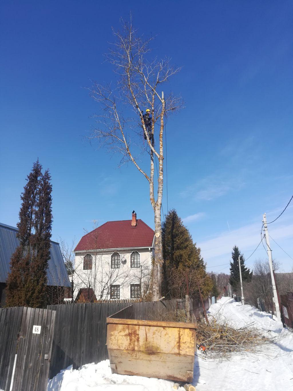 Заказывая такие сложные работы как спил березы было откровенно страшно. Дерево высотой в семиэтажный дом, толстое настолько что снизу и не обхватишь. На границе двух участков, с электропроводами с одной стороны и верандой с другой. Заказывала работы просто на сайте, без знакомств и рекомендаций.
